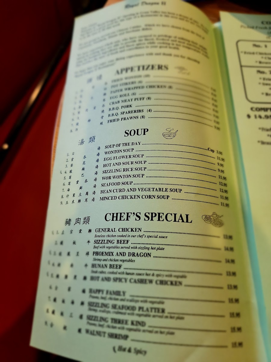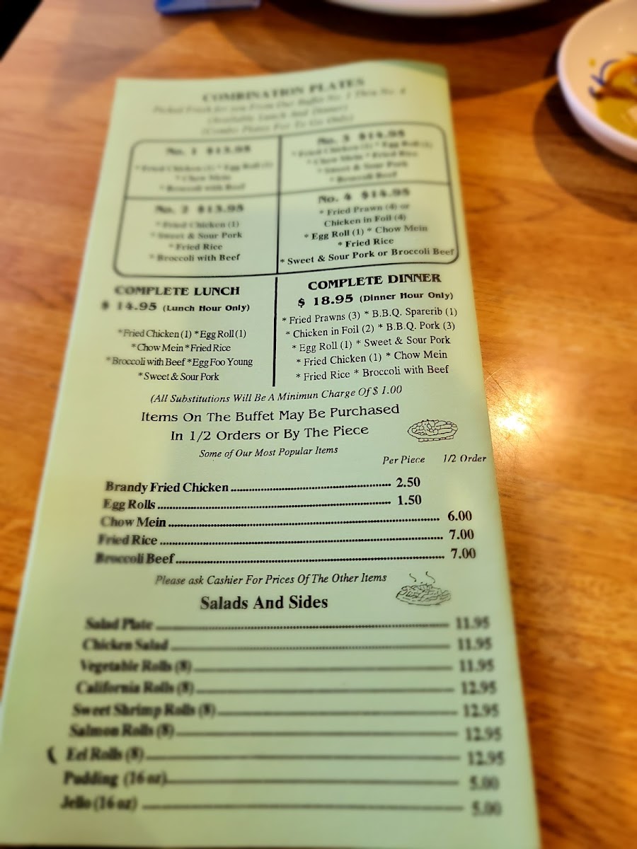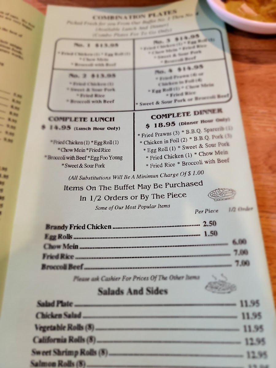 Fried Prawn (4), or Chicken in Foil (4), Egg Roll (1), Chow Mein or Fried Rice, sweet sour pork or Broccoli Beef